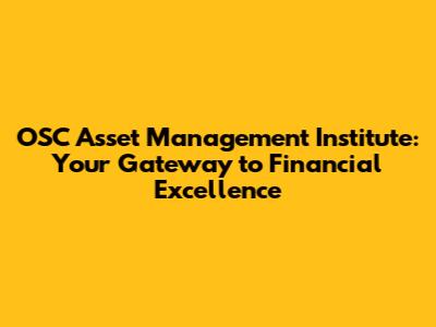 Hey everyone, let's dive into the world of finance and explore a fantastic institution: the OSC Asset Management Institute (OSCAMI). If you're looking to level up your financial knowledge, whether you're a seasoned pro or just starting out, this is the place to be. We're going to break down what OSCAMI is all about, what it offers, and why it might be the perfect fit for your career goals. So, grab a coffee, settle in, and let's get started!