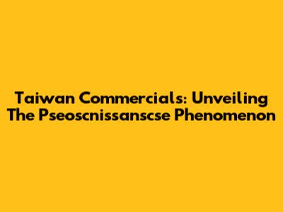 Taiwan Commercials: Unveiling The Pseoscnissanscse Phenomenon
