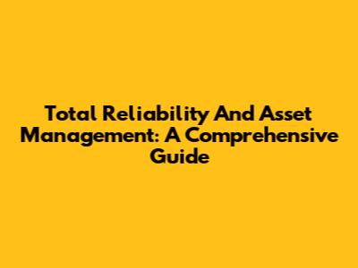 Total Reliability And Asset Management: A Comprehensive Guide