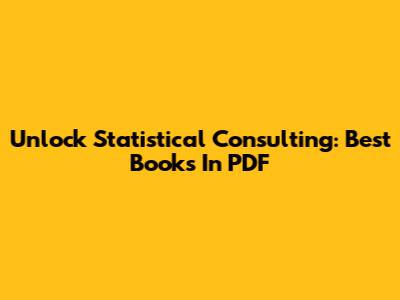 Unlock Statistical Consulting: Best Books In PDF