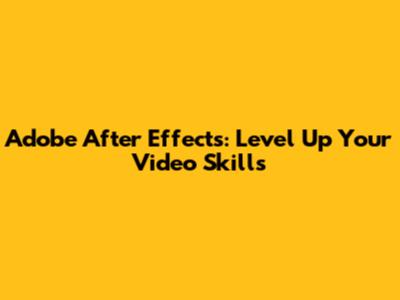 Adobe After Effects: Level Up Your Video Skills