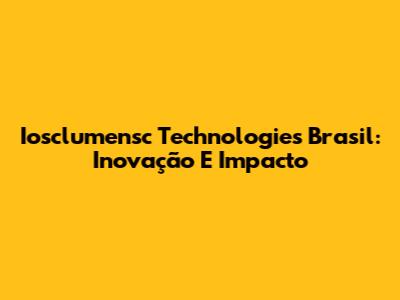 Iosclumensc Technologies Brasil: Inovação E Impacto
