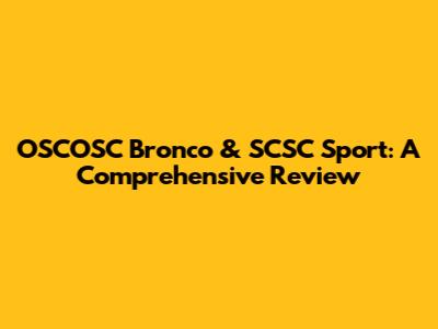 OSCOSC Bronco & SCSC Sport: A Comprehensive Review