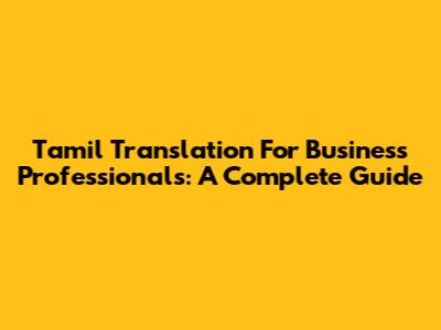 Tamil Translation For Business Professionals: A Complete Guide