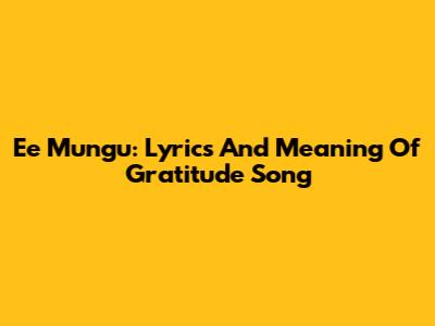 Ee Mungu: Lyrics And Meaning Of Gratitude Song