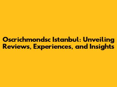 Oscrichmondsc Istanbul: Reviews, Experiences, And Insights