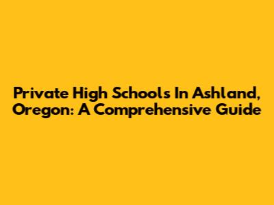 Private High Schools In Ashland, Oregon: A Comprehensive Guide