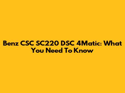 Benz CSC SC220 DSC 4Matic: What You Need To Know