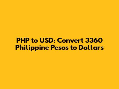 So, 3360 Philippine pesos is approximately equal to 67.2 US dollars, based on an exchange rate of 1 USD = 50 PHP. Keep in mind that the actual amount may vary slightly depending on the exact exchange rate at the time of conversion.