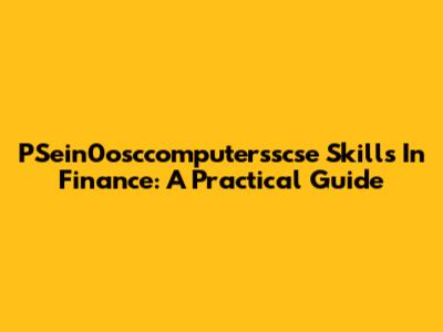 PSein0osccomputersscse Skills In Finance: A Practical Guide