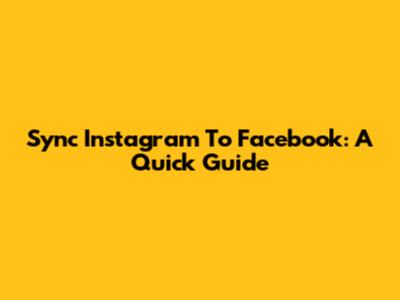 Sync Instagram To Facebook: A Quick Guide