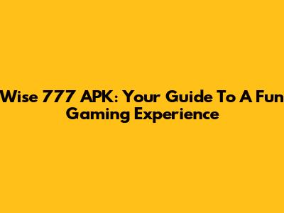 Wise 777 APK: Your Guide To A Fun Gaming Experience