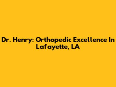 Dr. Henry: Orthopedic Excellence In Lafayette, LA