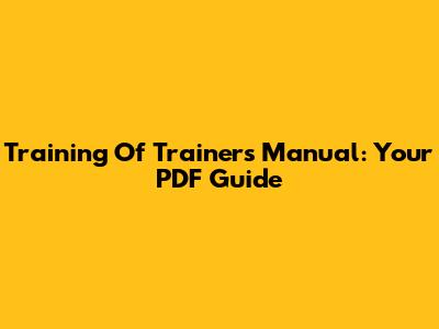 Training Of Trainers Manual: Your PDF Guide