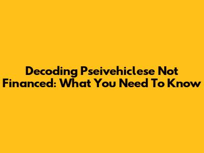 Decoding 'Pseivehiclese Not Financed': What You Need To Know