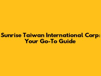Sunrise Taiwan International Corp: Your Go-To Guide