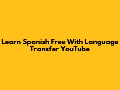 Learn Spanish Free With Language Transfer YouTube