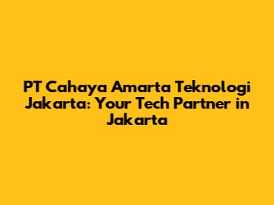 Hey guys! Ever heard of PT Cahaya Amarta Teknologi in Jakarta? If you're looking for a reliable tech partner in the bustling capital of Indonesia, you've come to the right place. Let's dive deep into what makes this company tick, why they're a great choice, and how they can help you with your tech needs.