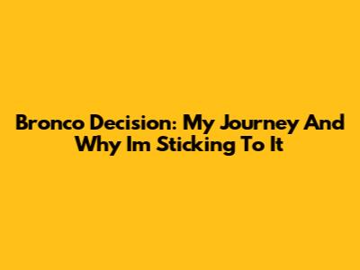 Bronco Decision: My Journey And Why I'm Sticking To It