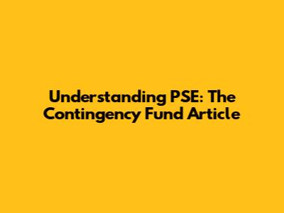 Understanding PSE: The Contingency Fund Article