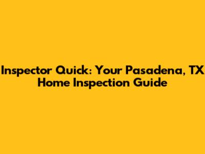 Inspector Quick: Your Pasadena, TX Home Inspection Guide