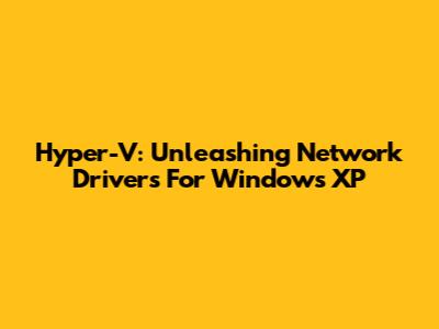 Hyper-V: Unleashing Network Drivers For Windows XP