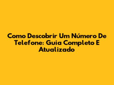 Como Descobrir Um Número De Telefone: Guia Completo E Atualizado