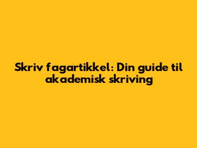 Skriv Fagartikkel: Din Guide Til Akademisk Skriving