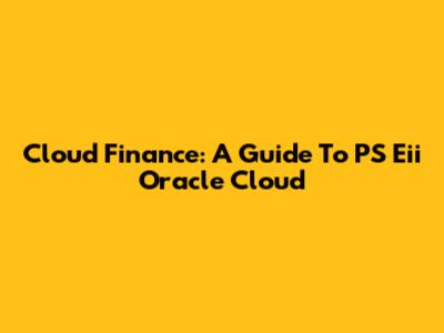 Cloud Finance: A Guide To PS Eii Oracle Cloud