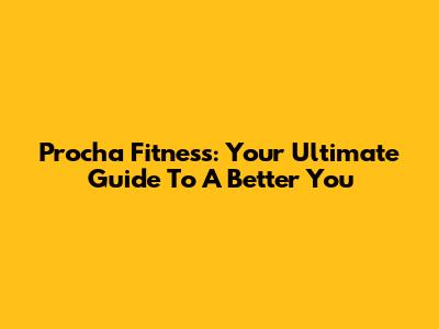 Procha Fitness: Your Ultimate Guide To A Better You