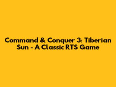 Command & Conquer 3: Tiberian Sun - A Classic RTS Game
