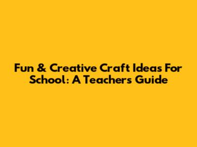Fun & Creative Craft Ideas For School: A Teacher's Guide