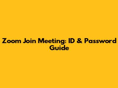 Zoom Join Meeting: ID & Password Guide
