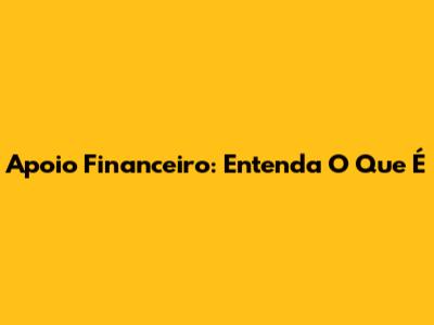 Apoio Financeiro: Entenda O Que É