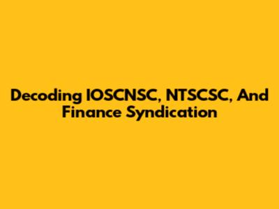 Decoding IOSCNSC, NTSCSC, And Finance Syndication
