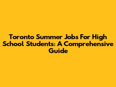 Toronto Summer Jobs For High School Students: A Comprehensive Guide