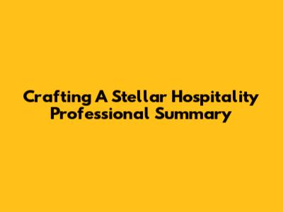 Crafting A Stellar Hospitality Professional Summary