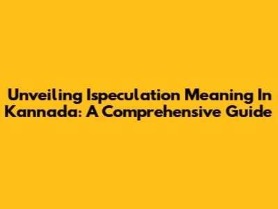 Unveiling Ispeculation Meaning In Kannada: A Comprehensive Guide