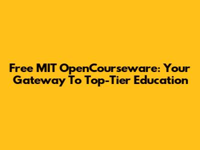 Free MIT OpenCourseware: Your Gateway To Top-Tier Education