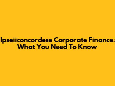 Ipseiiconcordese Corporate Finance: What You Need To Know