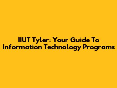 IIUT Tyler: Your Guide To Information Technology Programs