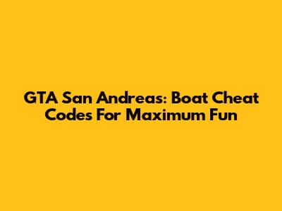 GTA San Andreas: Boat Cheat Codes For Maximum Fun