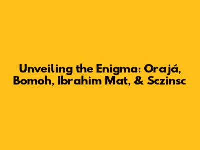 Alright, let's turn our attention to Ibrahim Mat and Sczinsc. Without more context, it's a bit tough to tell precisely how these two people fit into the puzzle. The name Ibrahim Mat could be a person's name or a combination of names. If it's a person's name, then we can search for them to know more about the person. We need to do a little detective work to try and find any connections to either Orajá or the practice of Bomoh-ism. Sczinsc, on the other hand, is a slightly different story. It could be a surname, a place, or even a symbolic reference. The mystery deepens! We have to delve into historical records, local folklore, or even the origins of the names themselves. It will be important to analyze if Ibrahim Mat and Sczinsc share a connection. Were they students of a specific Bomoh? Or was Ibrahim Mat a Bomoh himself? Maybe they were part of a community where Orajá was a central figure? Understanding the relationships between these individuals is really what will help us understand their roles. It is also important to consider that they could be completely unrelated. The connection, if any, could be subtle, hidden within cultural nuances or historical circumstances. We'll have to consider all possibilities and continue looking for evidence. The best approach is to get all of the available information and then piece it together. The truth is often revealed through patient investigation and analysis.