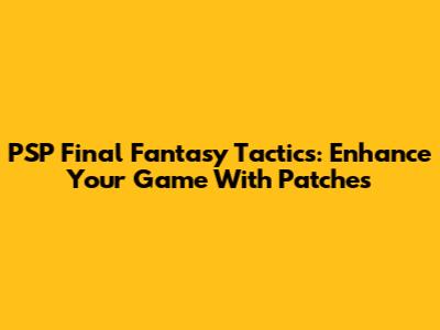 PSP Final Fantasy Tactics: Enhance Your Game With Patches