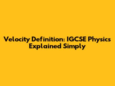 Velocity Definition: IGCSE Physics Explained Simply