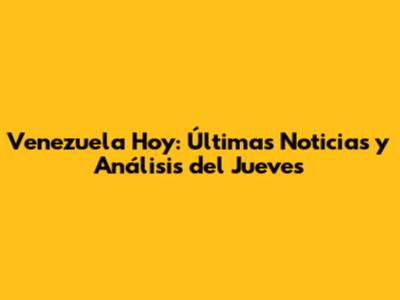 Venezuela Hoy: Últimas Noticias Y Análisis Del Jueves