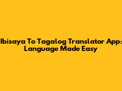 Ibisaya To Tagalog Translator App: Language Made Easy